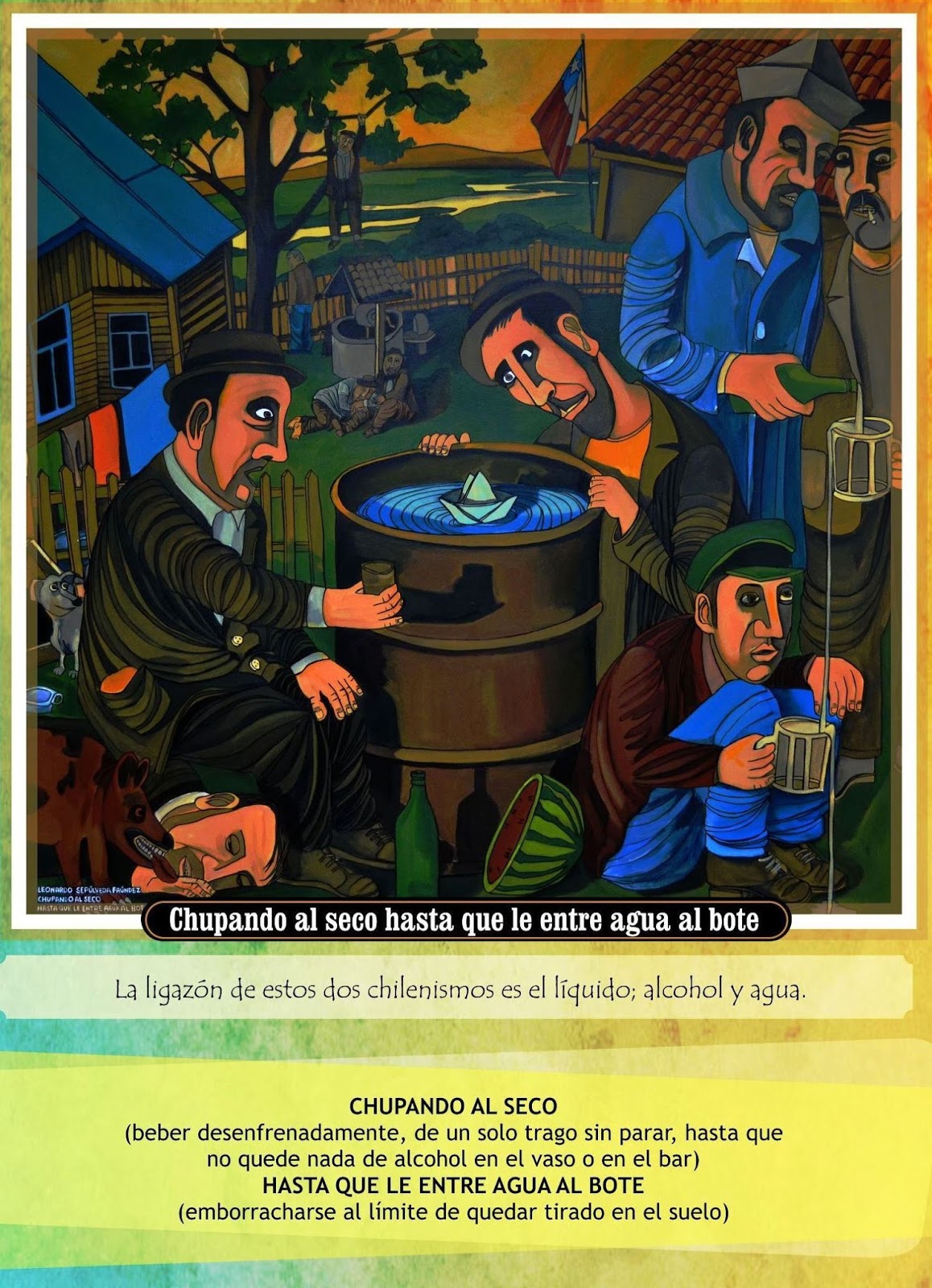 LA ÚLTIMA CHUPA` DEL MATE EN PINTURAS SOBRE CHILENISMOS del pulento pintor de brocha gorda leonardo sepúlveda faúndez (leoelpintor@gmail.com)